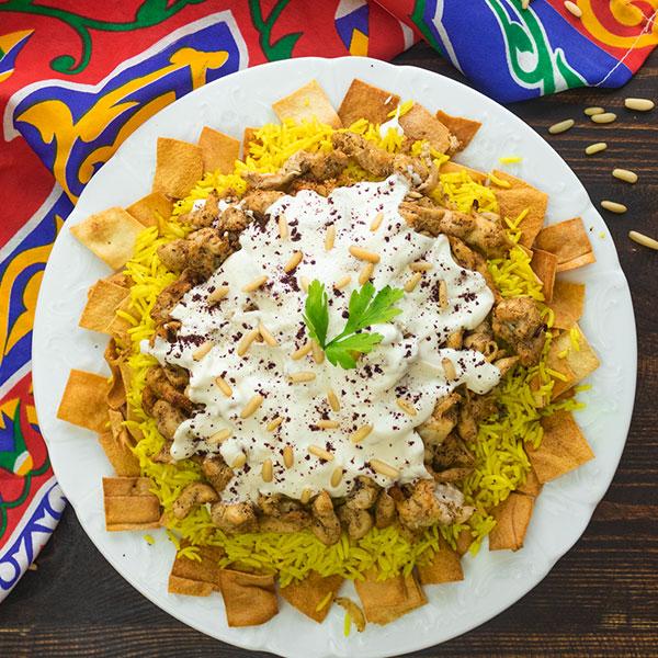 أما بالنسبة للحوم، فاختيار اللحم الطازج والمناسب للشاورما مثل صدور الدجاج أو اللحم الغنم الطازج يمنح الطبق نكهة وقوام مميزين. تأكدي من نظافة اللحوم وخلوها من الروائح الغريبة. كما يُفضل استبدال الخبز العادي بـخبز الصاج الطازج لينعم طعم الفته ويُحافظ على رطوبته عند التقديم.