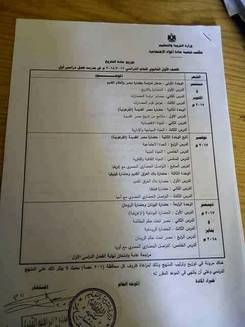 تحديد محاور المحتوى الأساسي لمنهج التاريخ والجغرافيا وكيفية توزيعه خلال العام الدراسي