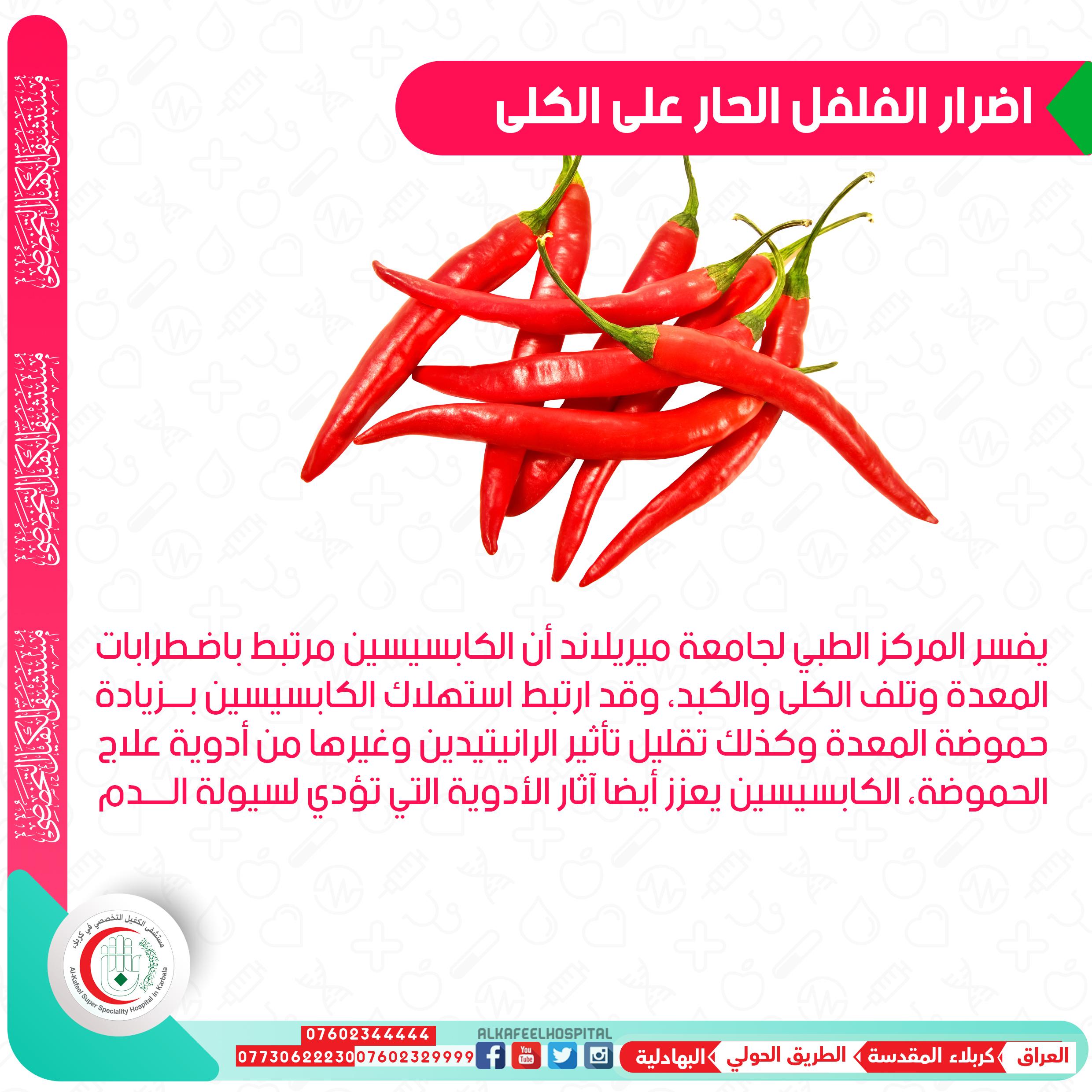 | طرق التخفيف | شرب الحليب أو تناول الزبادي بعد تناول الفلفل | عدم استخدام الماء فقط |