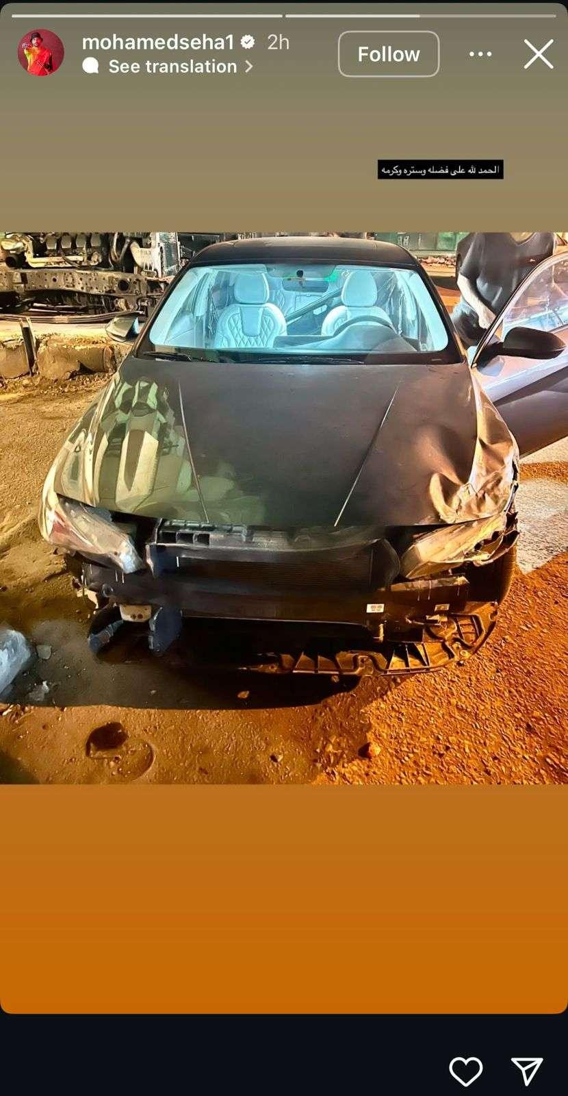 عند إطلالة أولى على حالة السيارة بعد الحادث، تظهر آثار الاصطدام بوضوح على الجزء الأمامي من المركبة، حيث تبرز انبعاجات كبيرة في الهيكل المعدني والزجاج الأمامي المكسور جزئياً. التلف يمتد إلى المصابيح الأمامية التي تعاني من تحطم كامل، بالإضافة إلى تضرر واضح في غطاء المحرك، مما يعكس شدة التصادم واحتياج السيارة لصيانة مكثفة قبل العودة إلى الاستخدام الآمن. الصورة تعكس حجم الحادث الذي تعرّض له الحارس، ومدى التأثير الذي طال مركبته الخاصة.