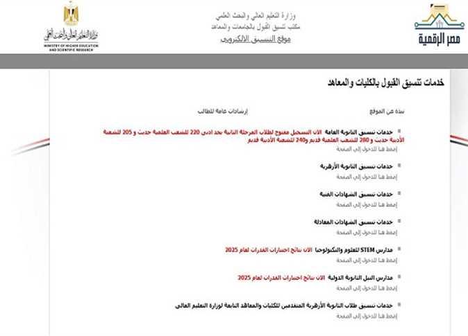 | طلاب الثانوية العامة 2025 | تسجيل الرغبات للقبول بالجامعات المختلفة |